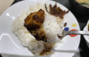 ライスと一緒に食べ進めていきます。ボリュームも十分で食べ応えがあります。